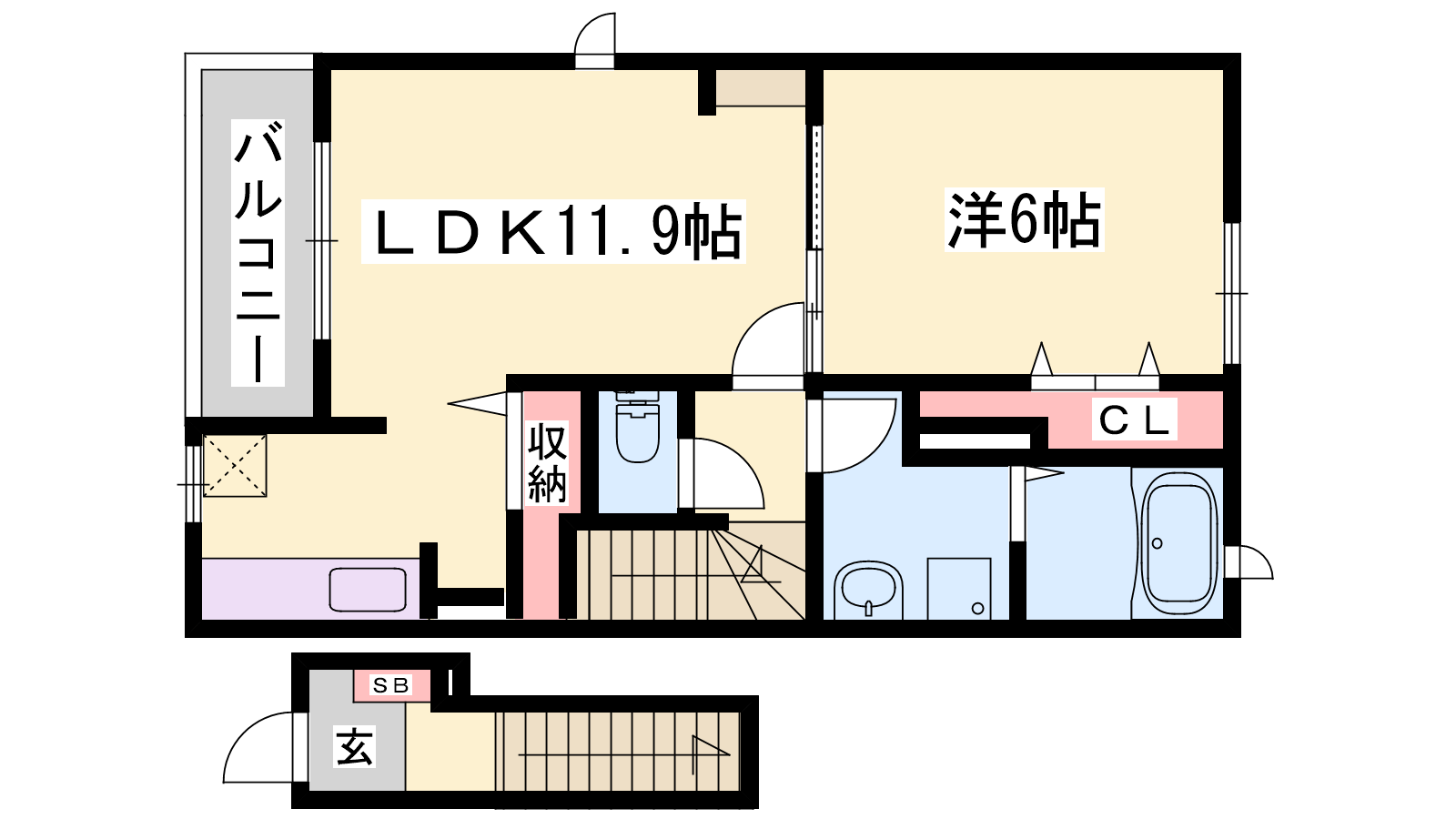 - LDK11.9帖、洋室6帖