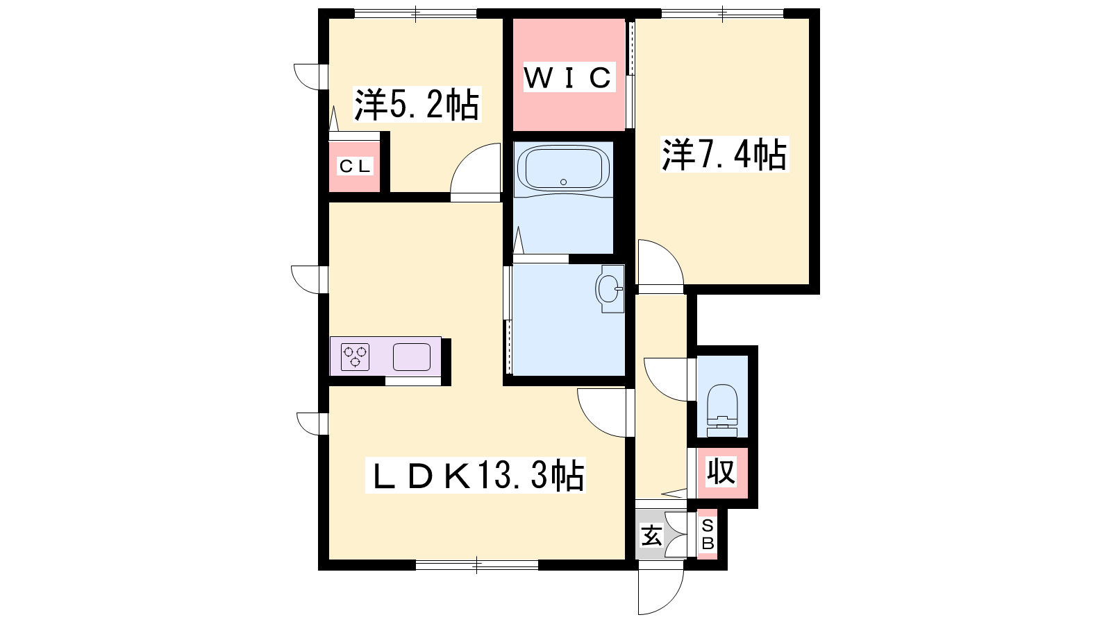 - LDK13.3帖、洋室7.4帖、洋室5.2帖