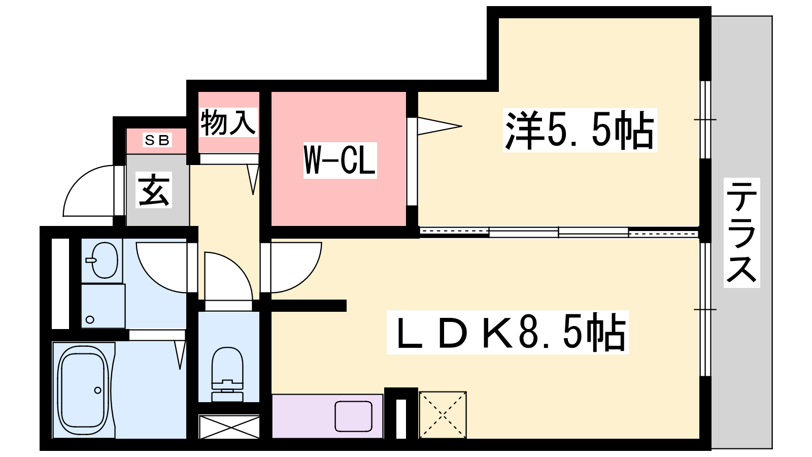 - LDK8.5帖、洋室5.5帖