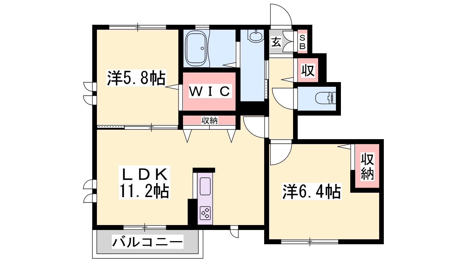 - LDK11.2帖、洋室6.4帖、洋室5.8帖