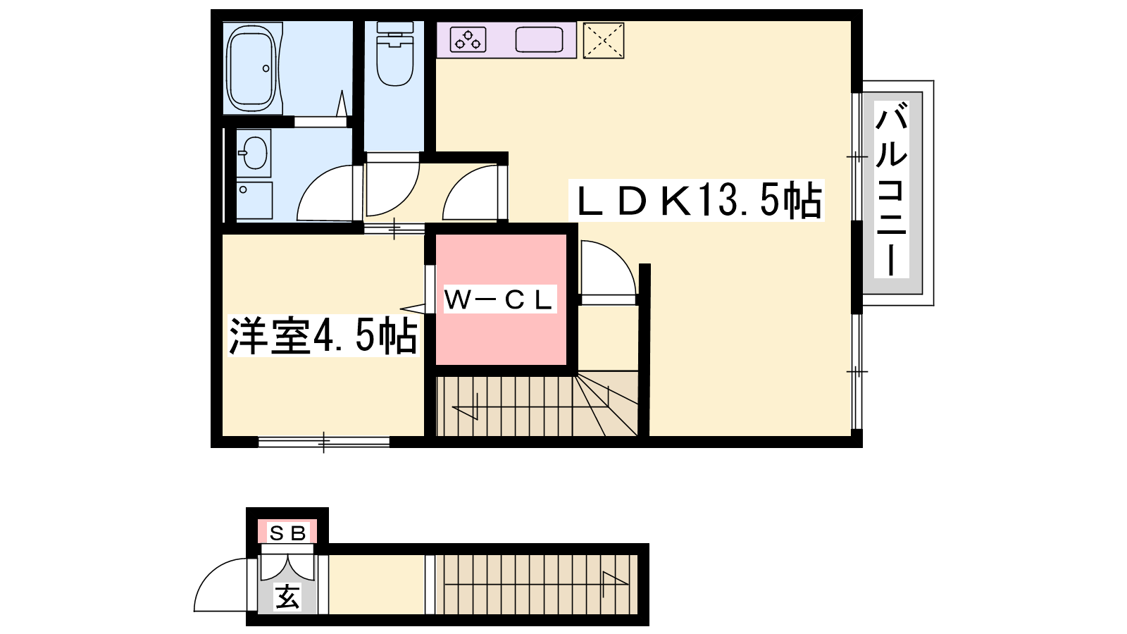 - LDK13.5帖、洋室4.5帖