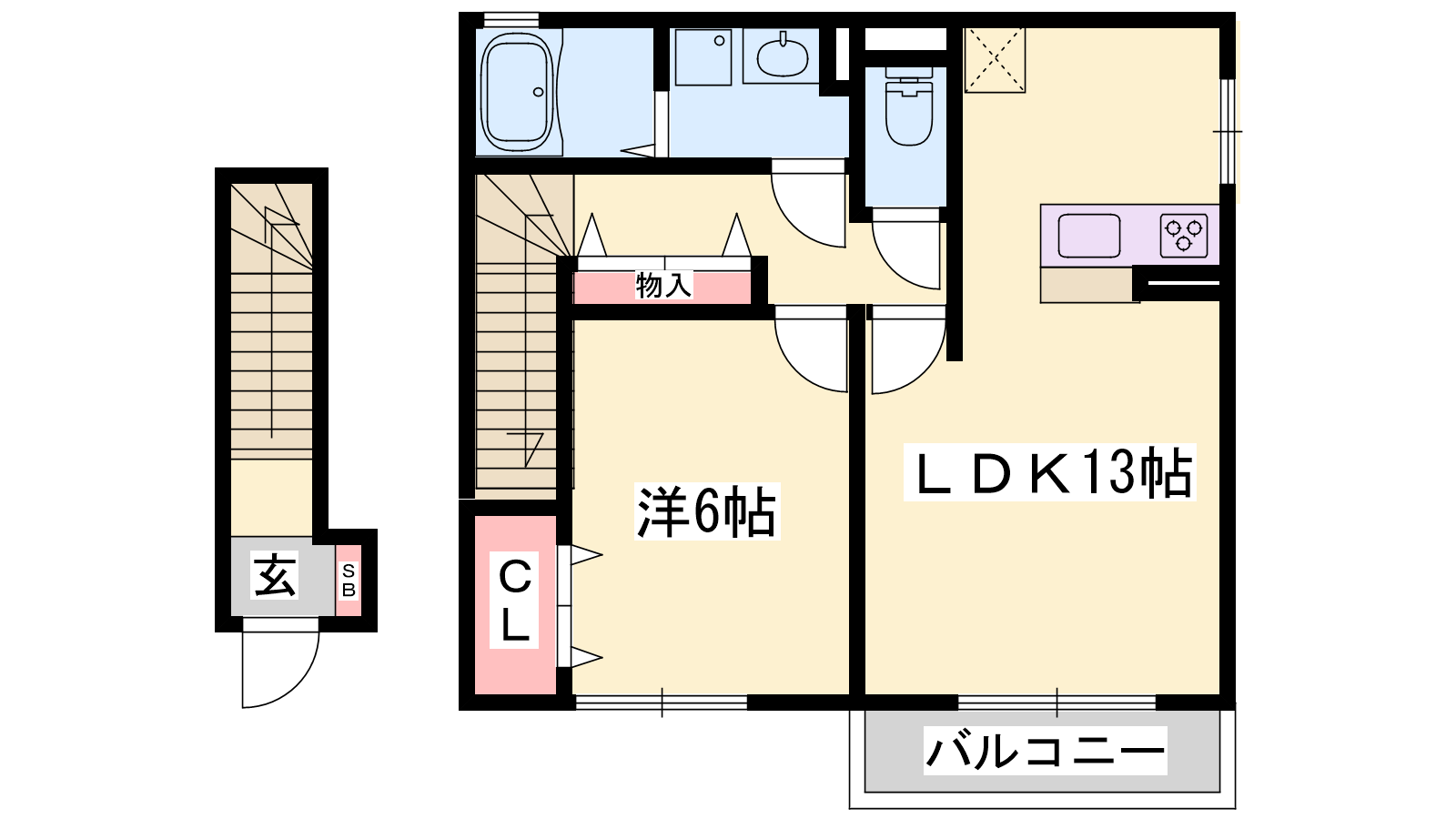 - LDK13帖、洋室6帖