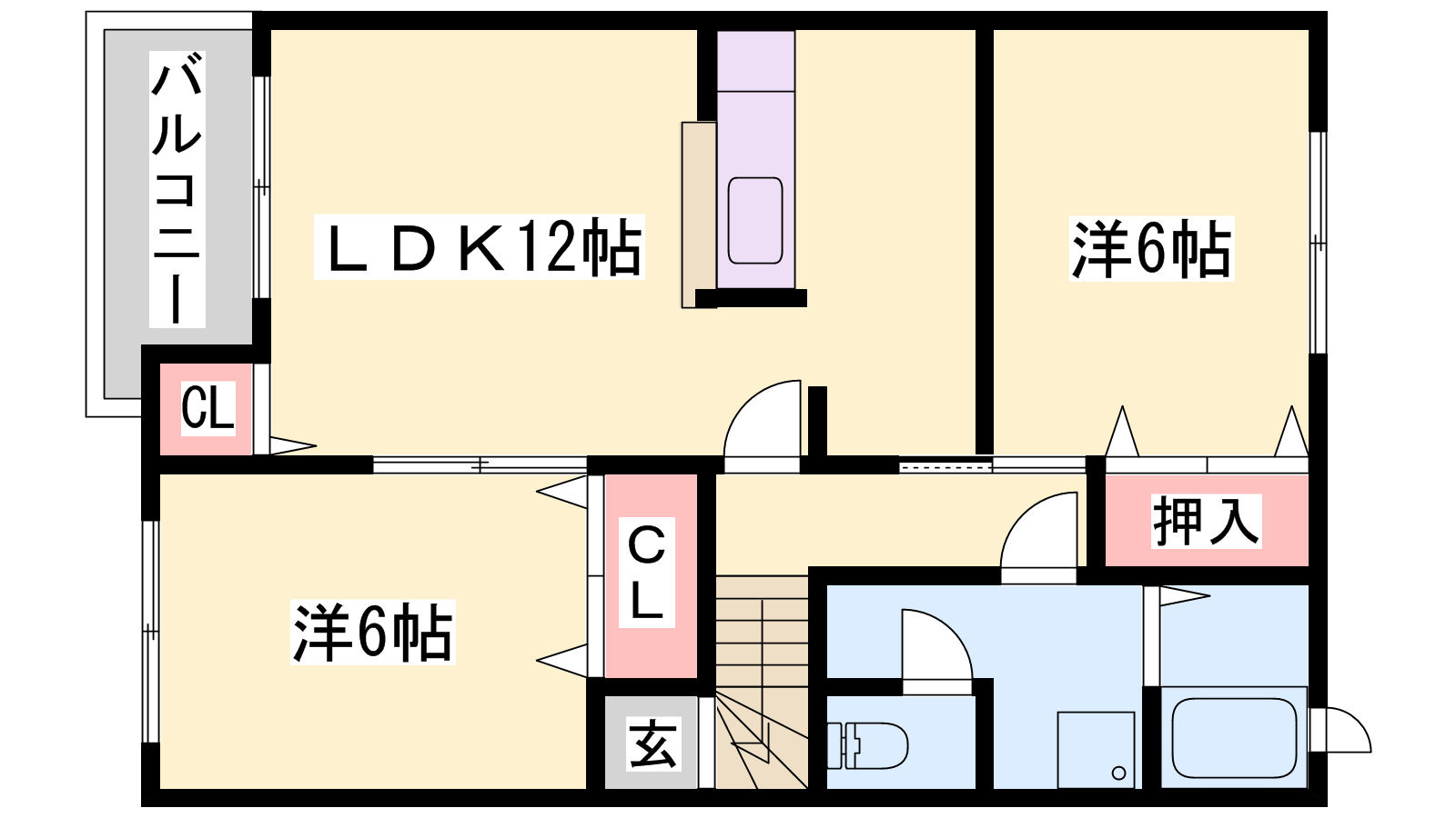 - LDK12帖、洋室6帖、洋室6帖