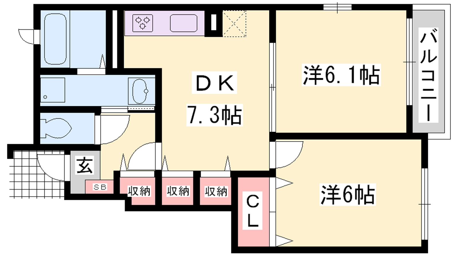 - DK7.3帖、洋室6帖、洋室6.1帖