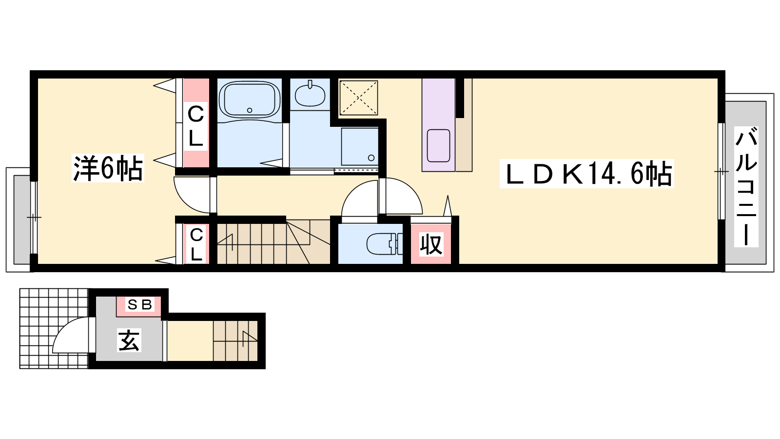 - LDK14.6帖、洋室6帖