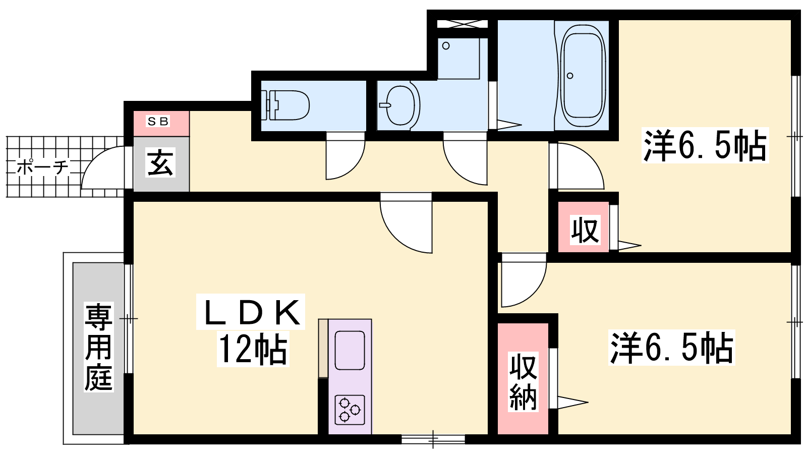 - LDK12帖、洋室6.5帖、洋室6.5帖