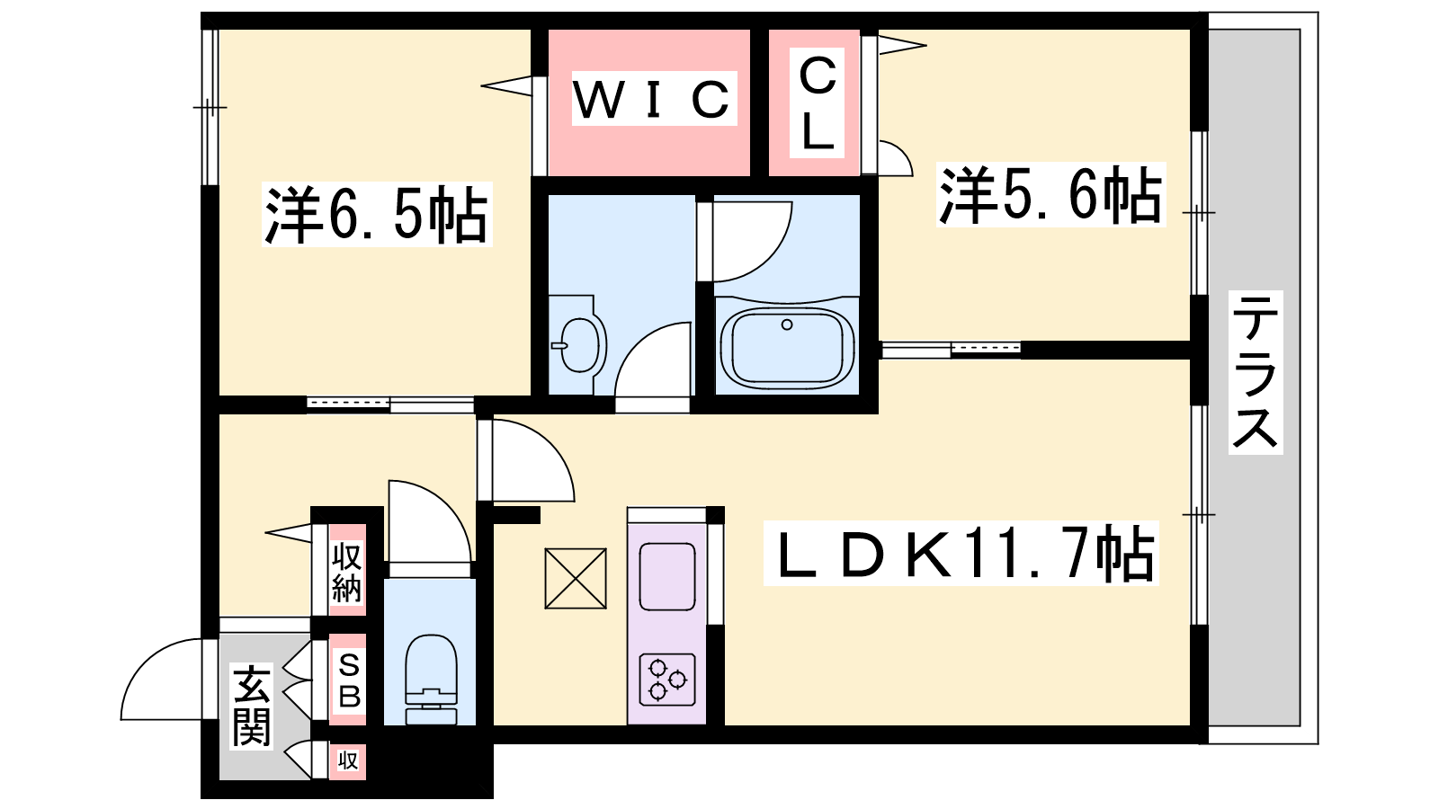 - LDK11.7帖、洋室6.5帖、洋室5.6帖