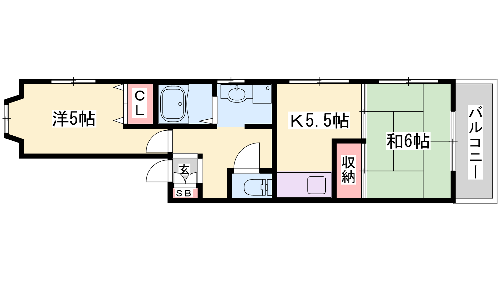 - DK5.5帖、洋室5帖、和室6帖