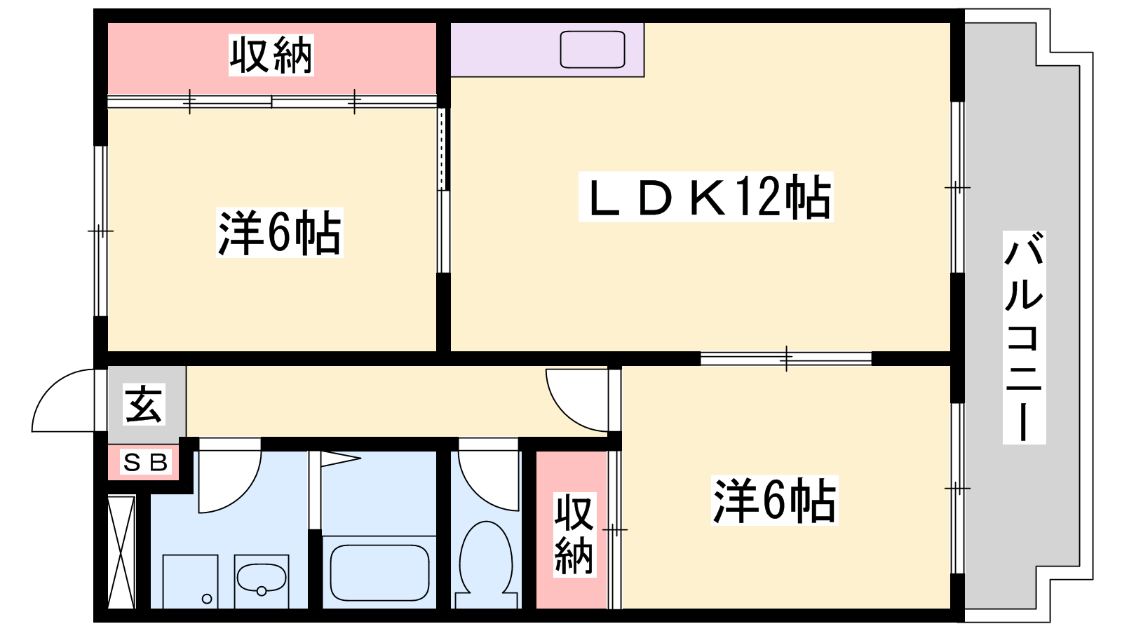 - LDK12帖、洋室6帖、洋室6帖