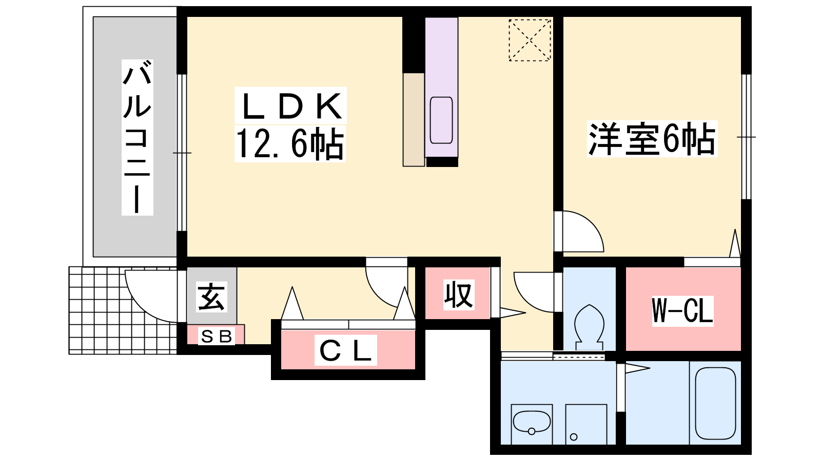 - LDK12.6帖、洋室6帖