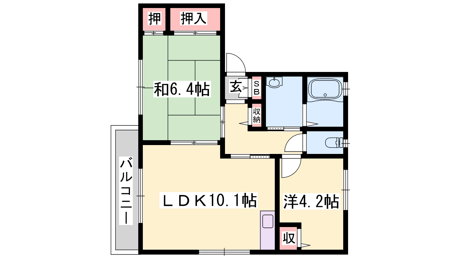 - LDK10.1帖、和室6.4帖、洋室4.2帖
