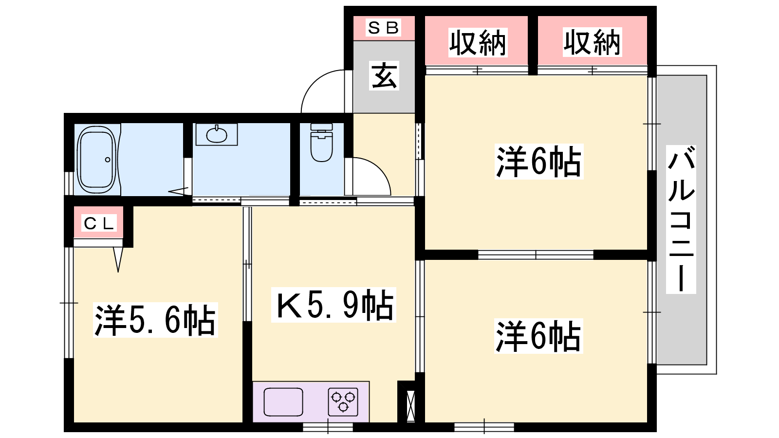 - K5.9帖、洋室6帖、洋室5.6帖、洋室6帖