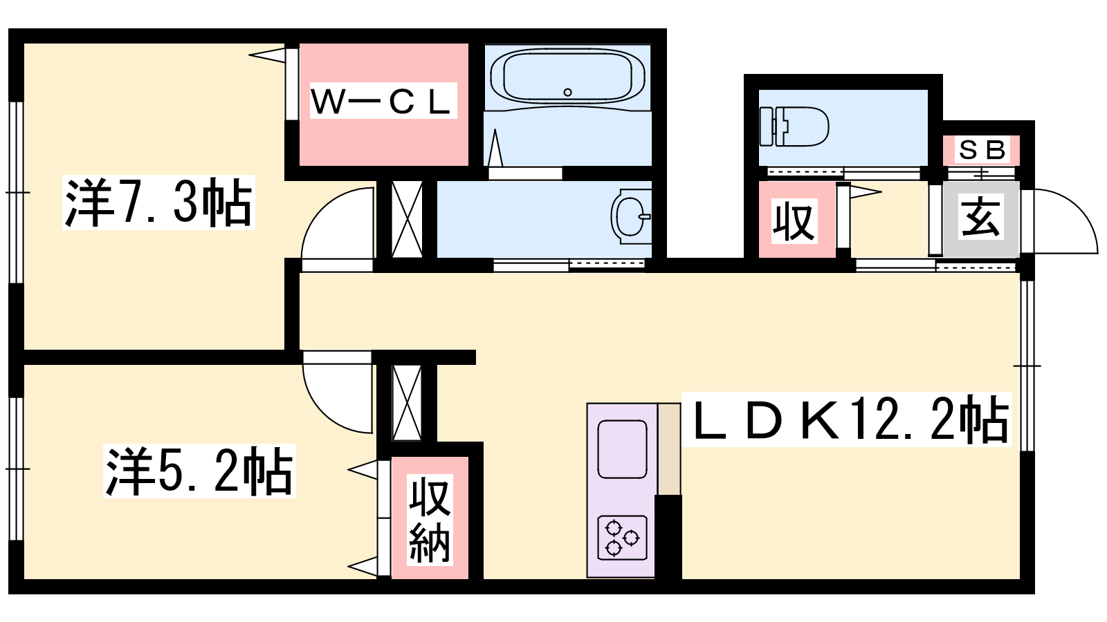 - LDK12.2帖、洋室5.2帖、洋室7.3帖