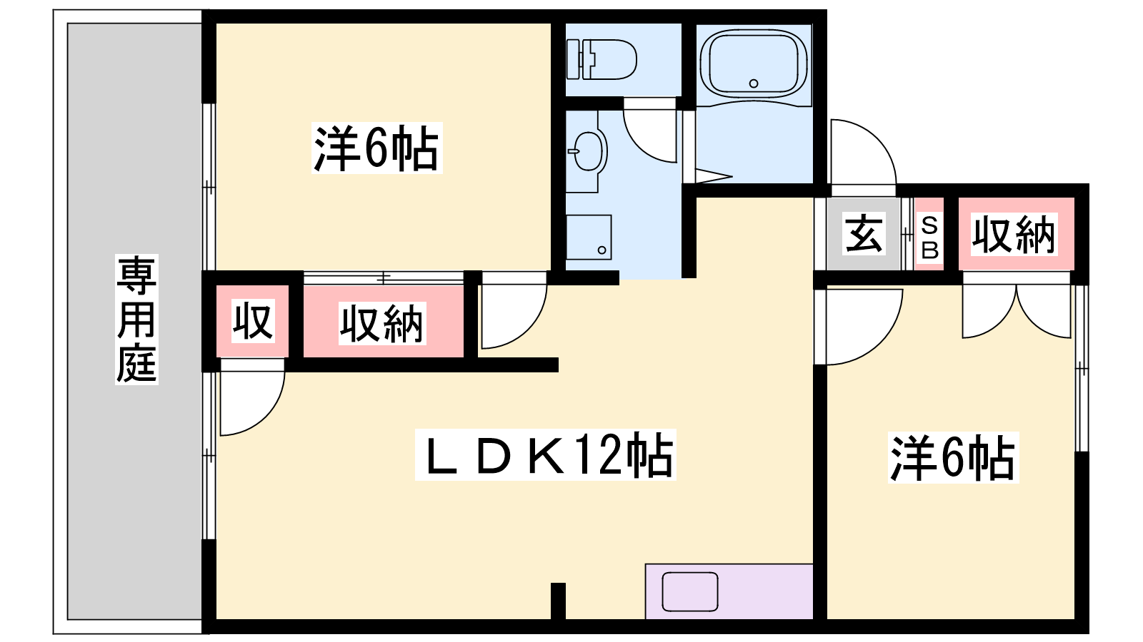 - LDK12帖、和室6帖、和室6帖