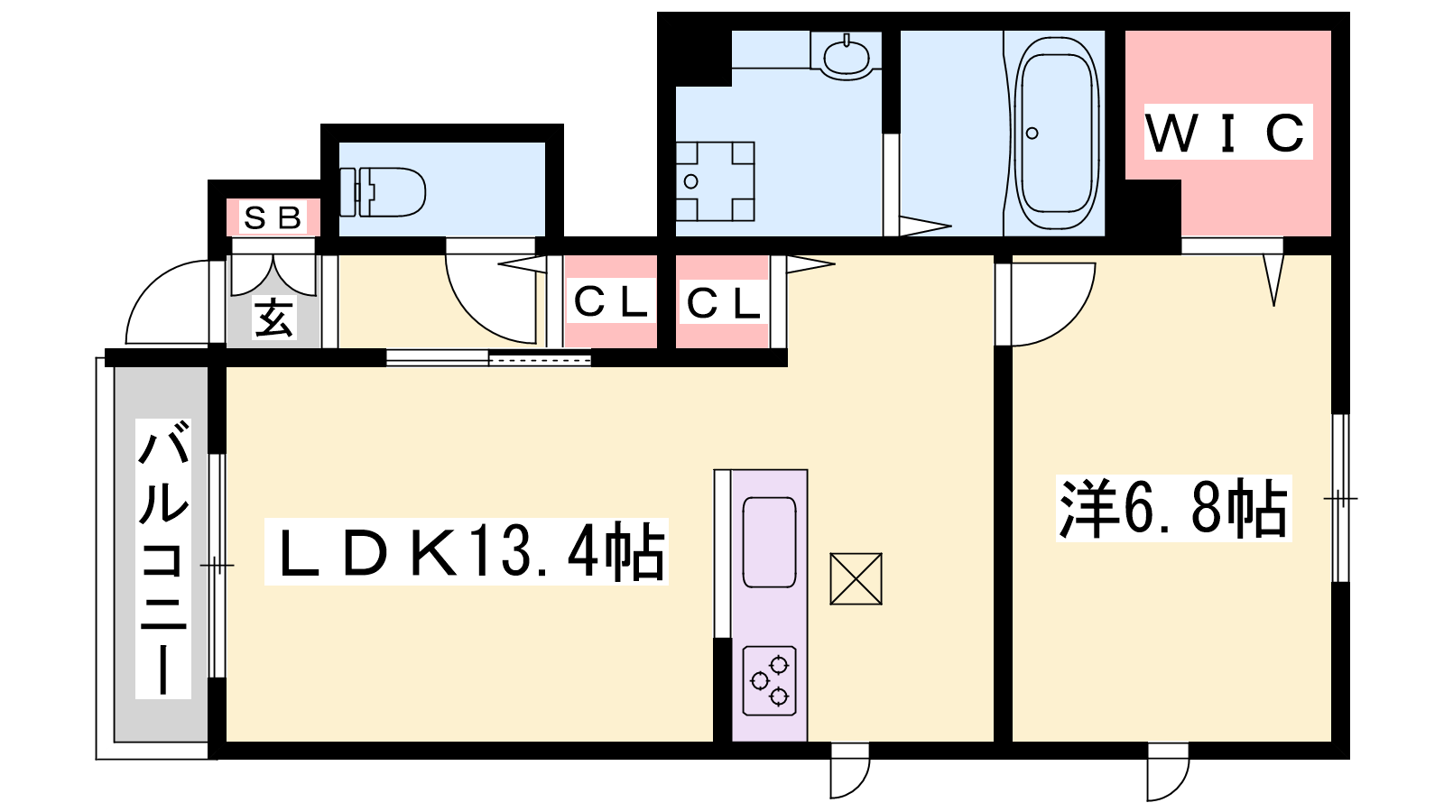 - LDK13.4帖、洋室6.8帖