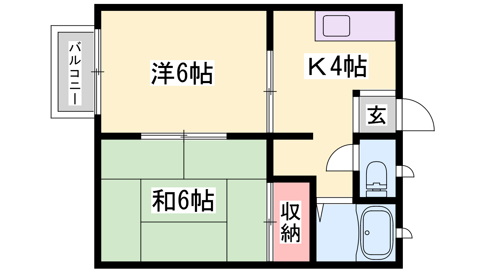 - K4帖、洋室6帖、和室6帖