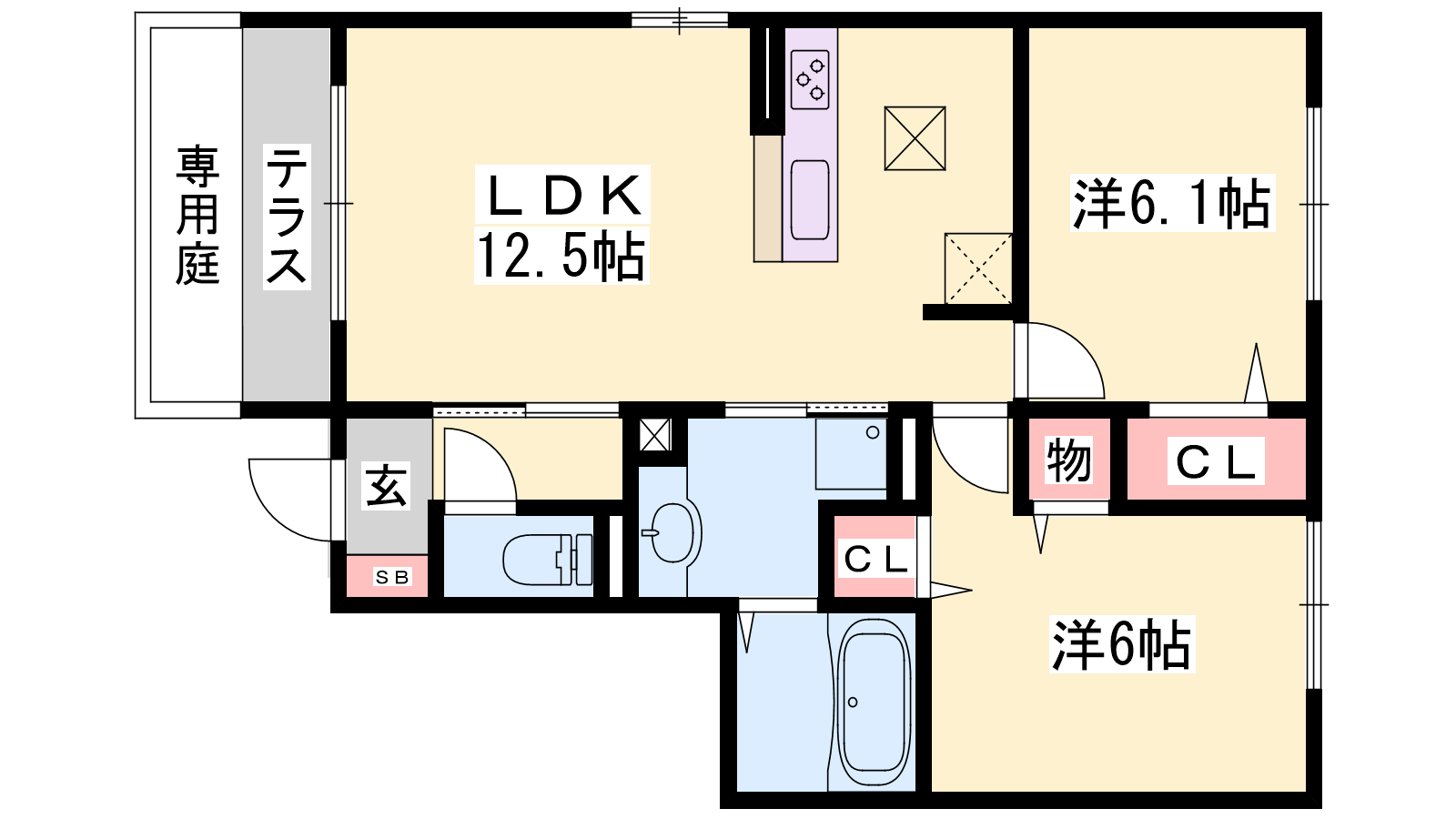 - LDK12.5帖、洋室6.1帖、洋室6帖