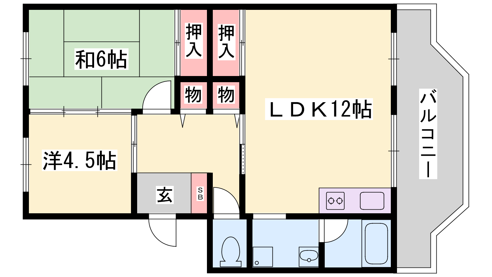 - LDK12帖、洋室4.5帖、和室6帖