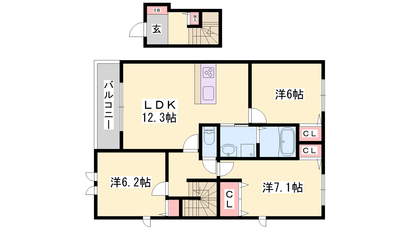 - LDK12.3帖、洋室7.2帖、洋室6帖、洋室6.2帖