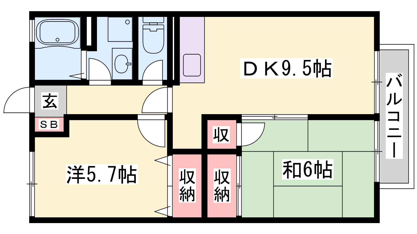 - DK9.5帖、和室6帖、洋室5.7帖