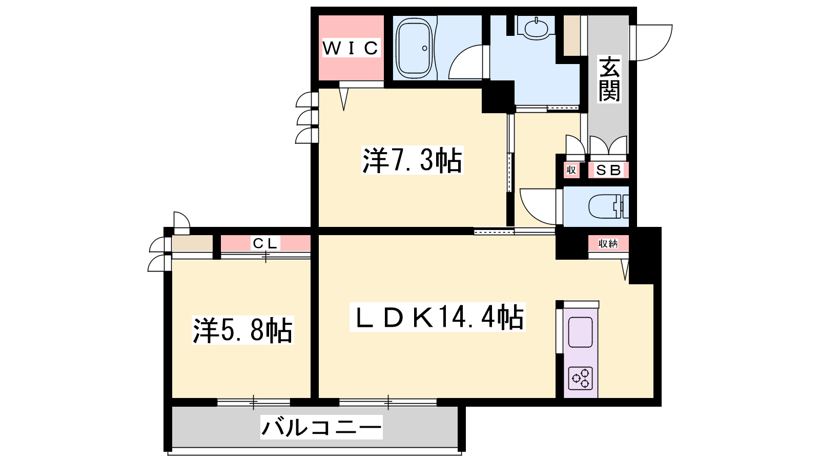 - LDK14.4帖、洋室7.3帖、洋室5.8帖