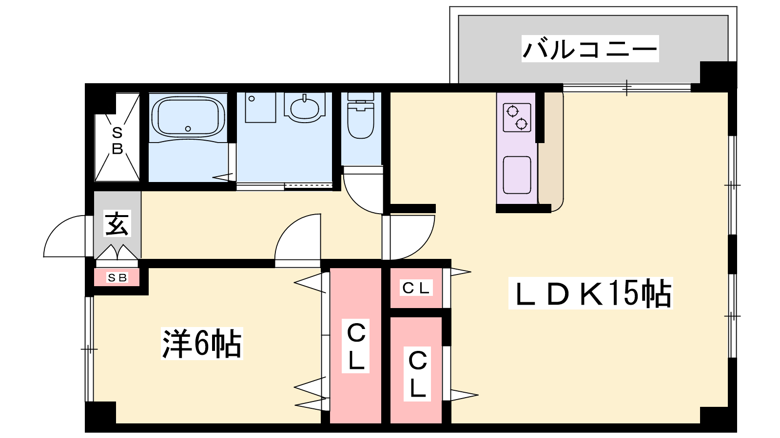 - LDK15帖、洋室6帖