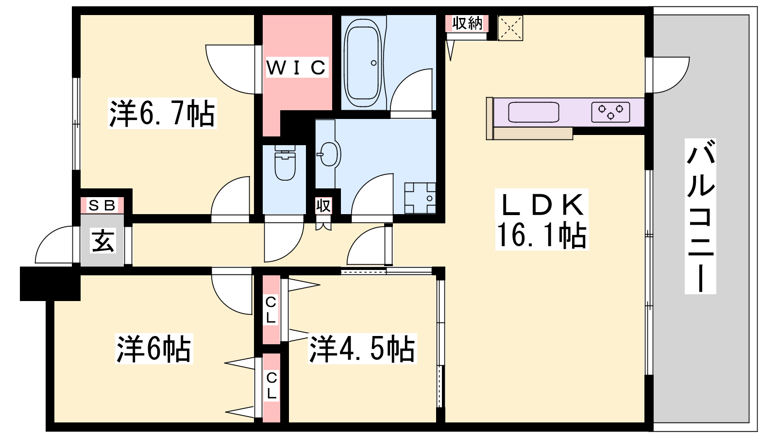 - LDK16.1帖、洋室6.7帖、洋室6帖、洋室4.5帖