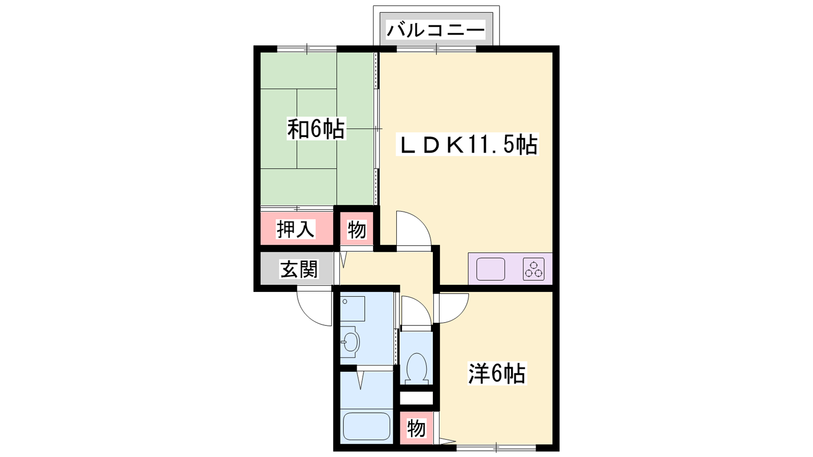 - LDK11.5帖、洋室6帖、和室6帖
