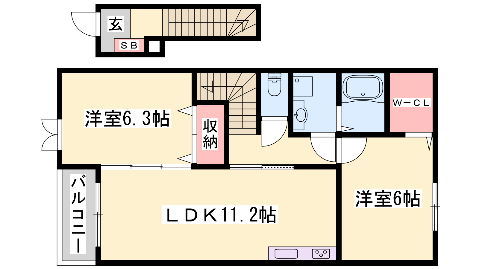 - LDK11.2帖、洋室6.3帖、洋室6帖