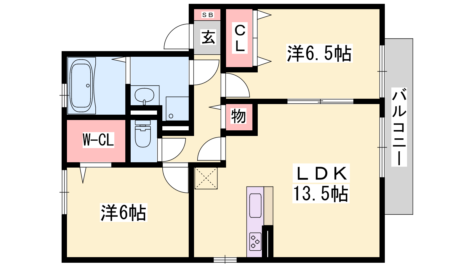 - LDK13.5帖、洋室6帖、洋室6.5帖