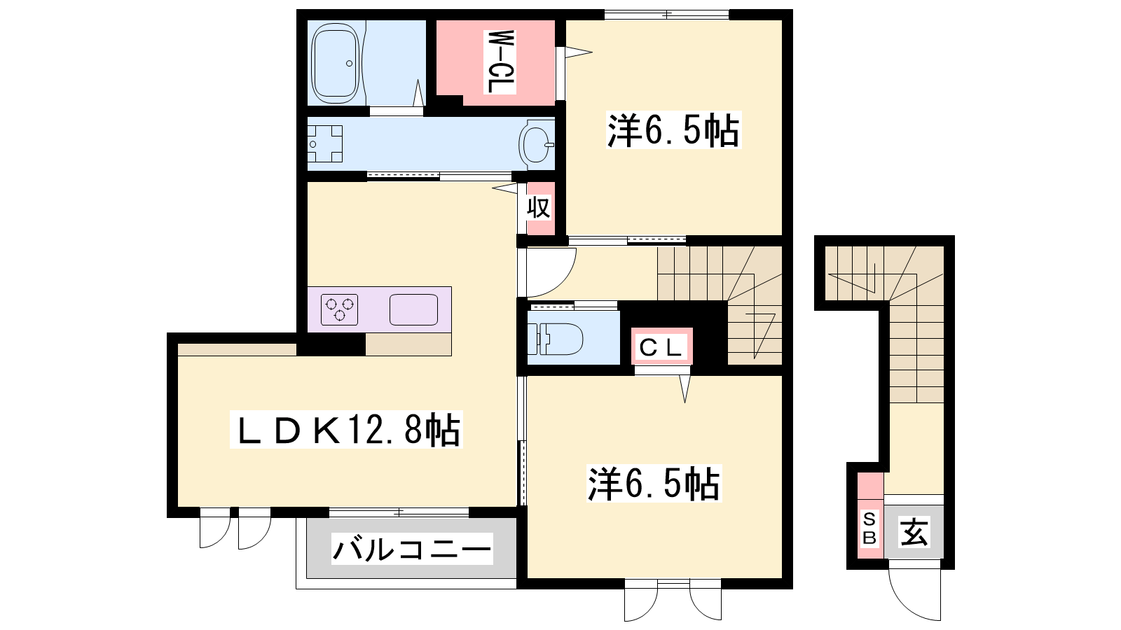 - LDK12.8帖、洋室6.5帖、洋室6.5帖