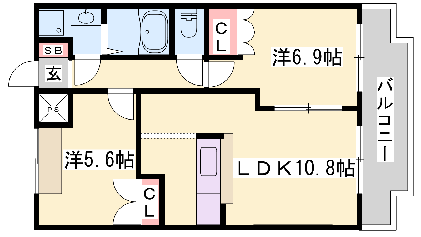 - LDK10.9帖、洋室6.9帖、洋室5.6帖