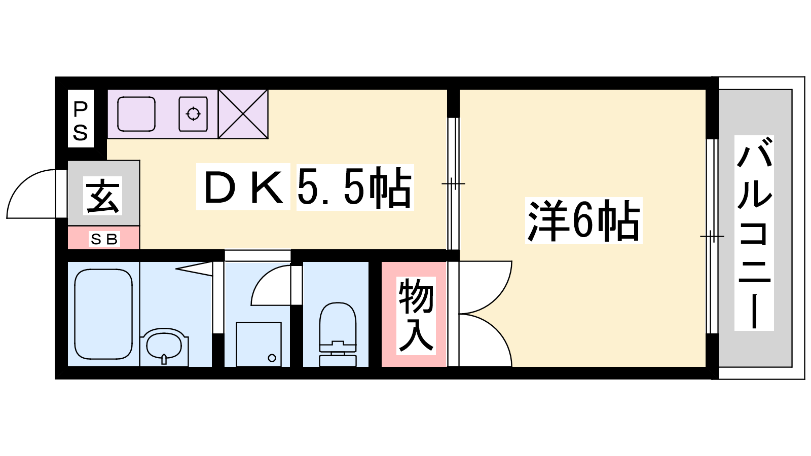 - DK5.5帖、洋室6帖
