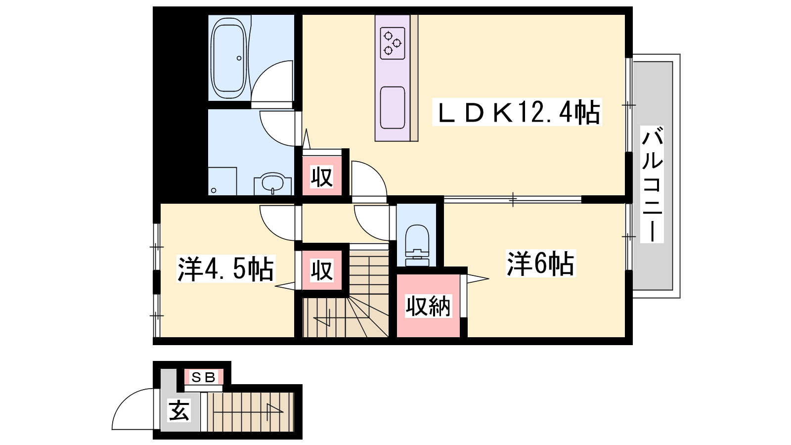 - LDK12.4帖、洋室6帖、洋室4.5帖