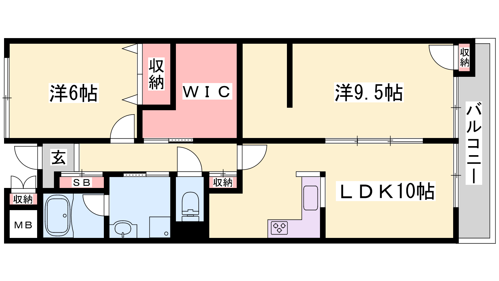 - LDK10帖、洋室9.5帖、洋室6帖