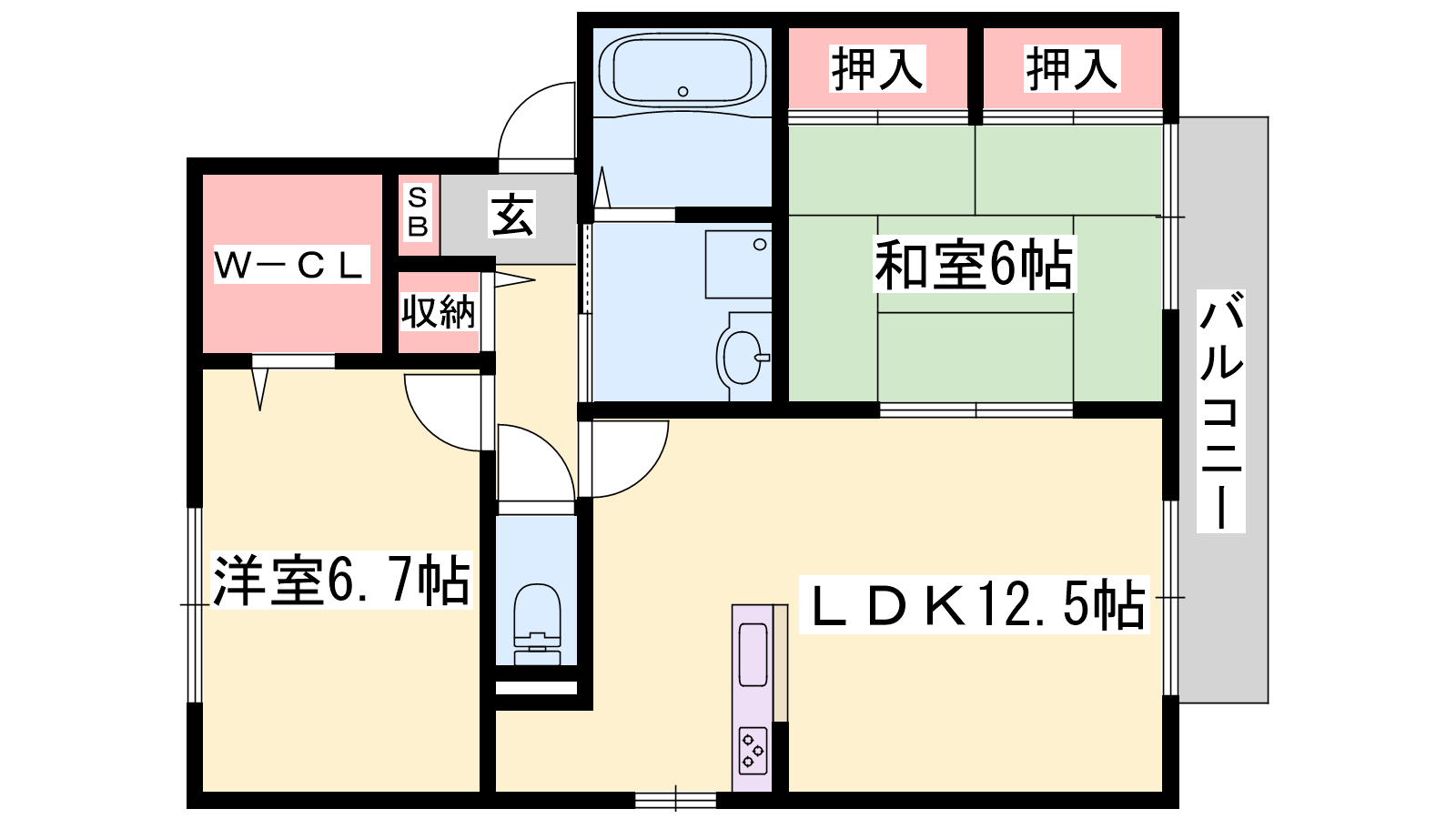 - LDK12.5帖、洋室6.7帖、和室6帖