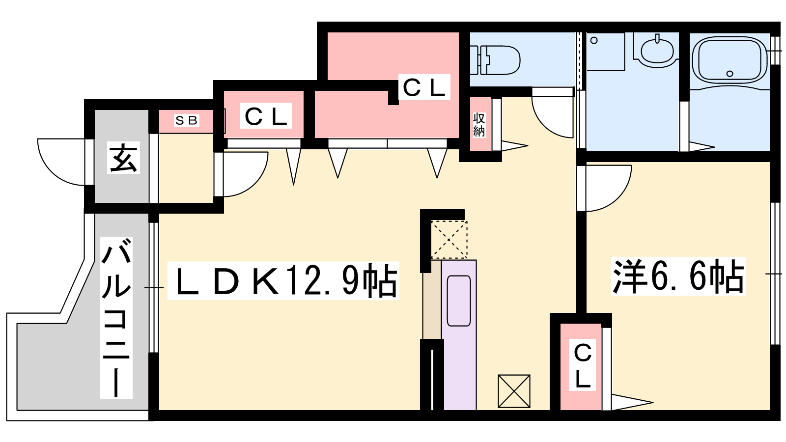 - LDK12.9帖、洋室6.6帖