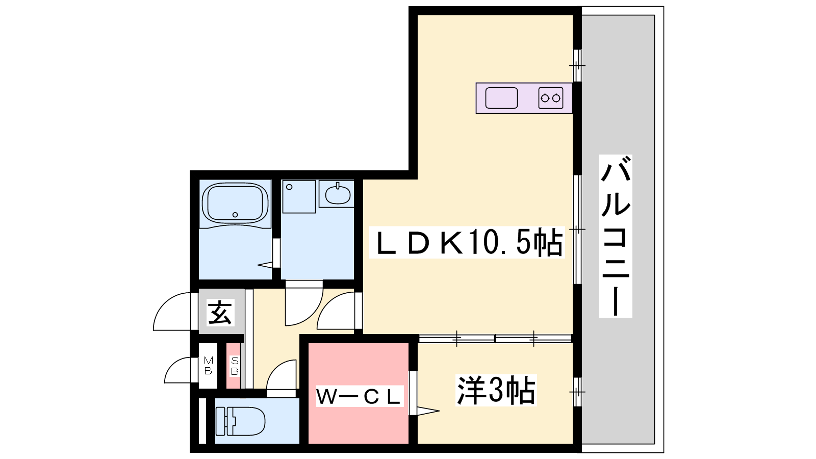 - LDK10.5帖、洋室3帖