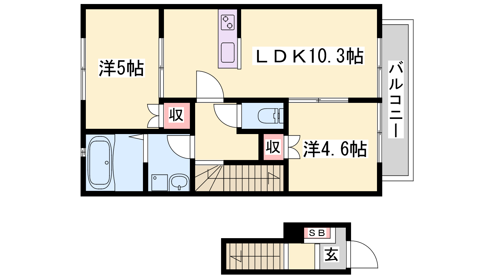 - LDK10.3帖、洋室5帖、洋室4.6帖