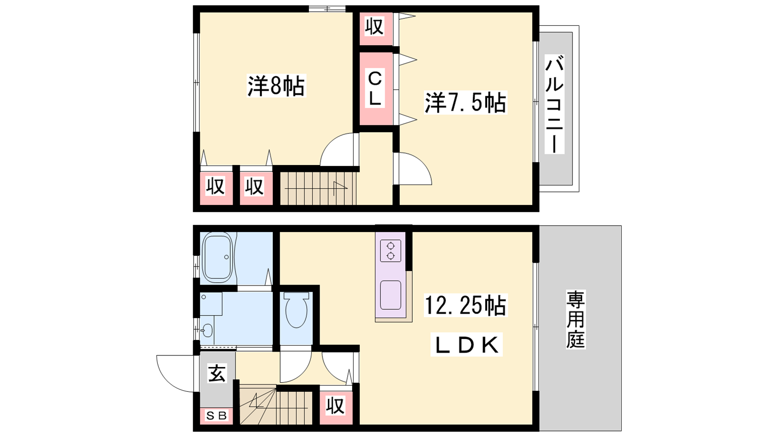- LDK12.25帖、洋室8帖、洋室7.5帖