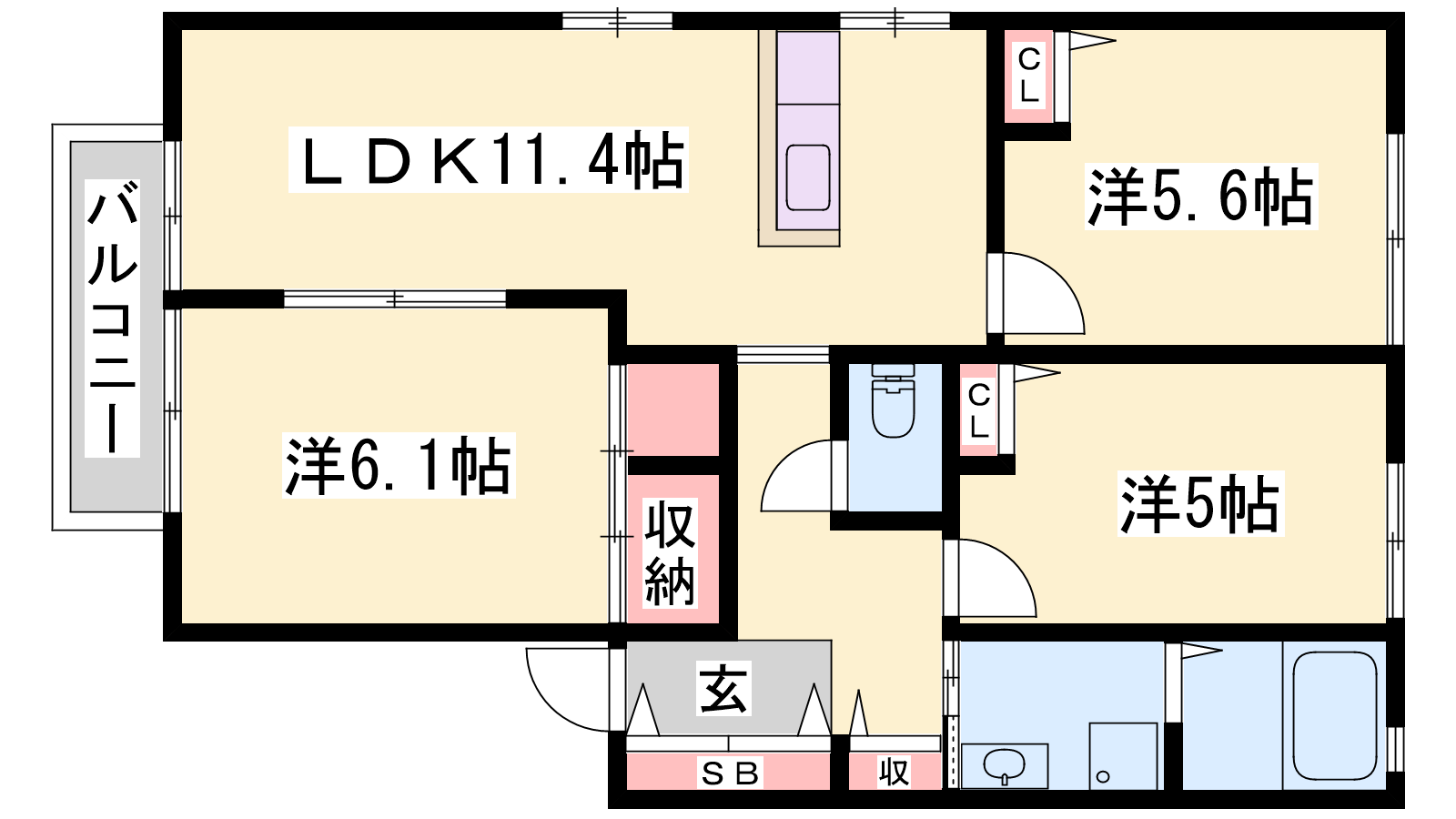 - LDK11.4帖、洋室6.1帖、洋室5.6帖、洋室5帖