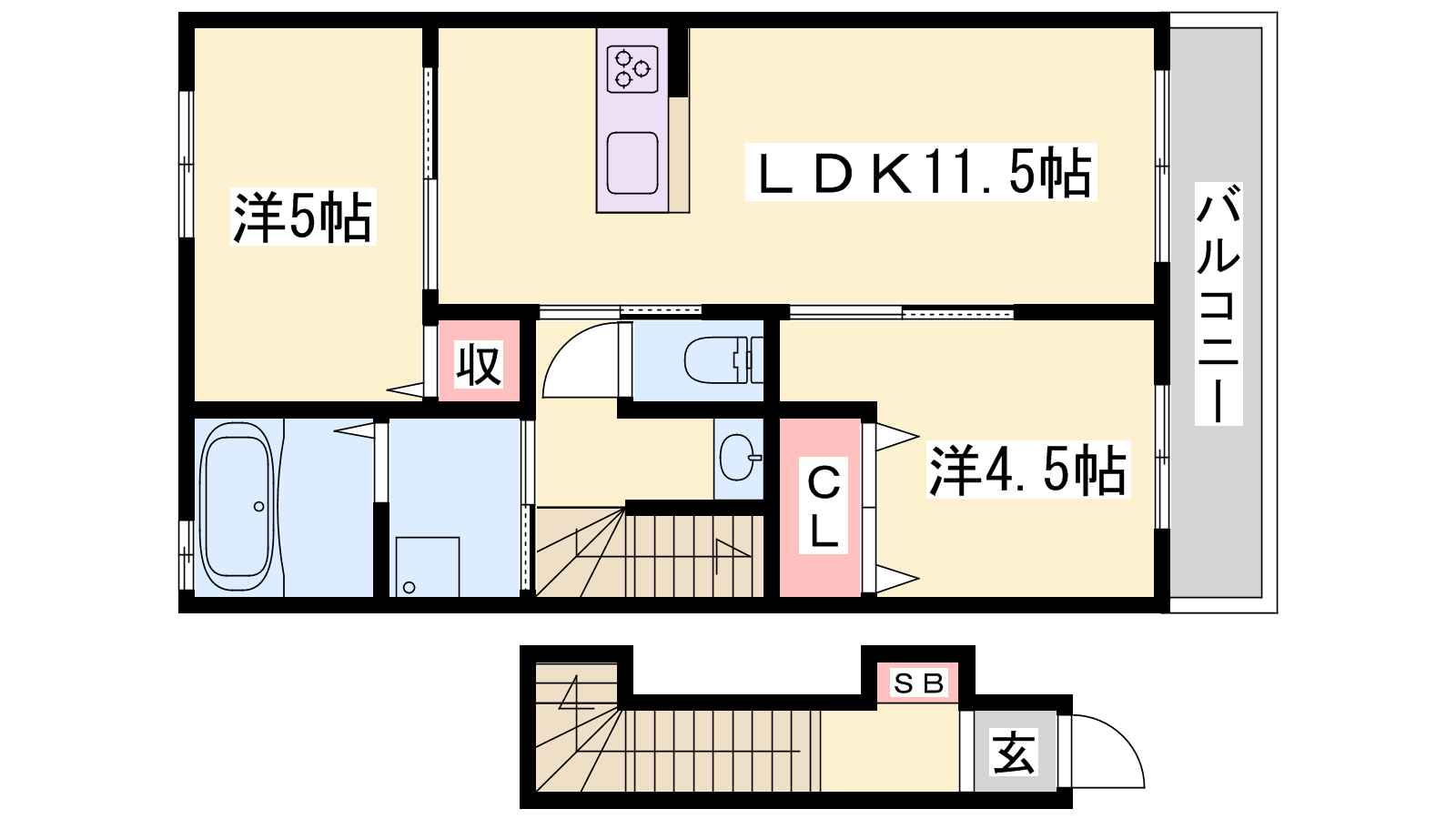 - LDK11.5帖、洋室5帖、洋室4.5帖