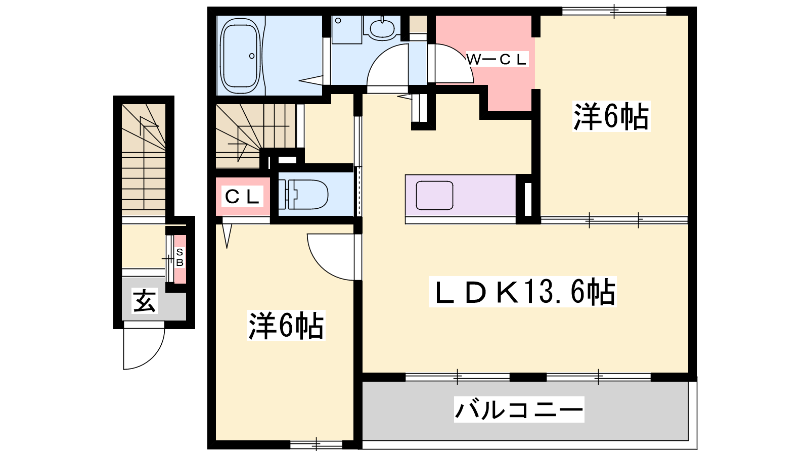 - LDK13.6帖、洋室6帖、洋室6帖