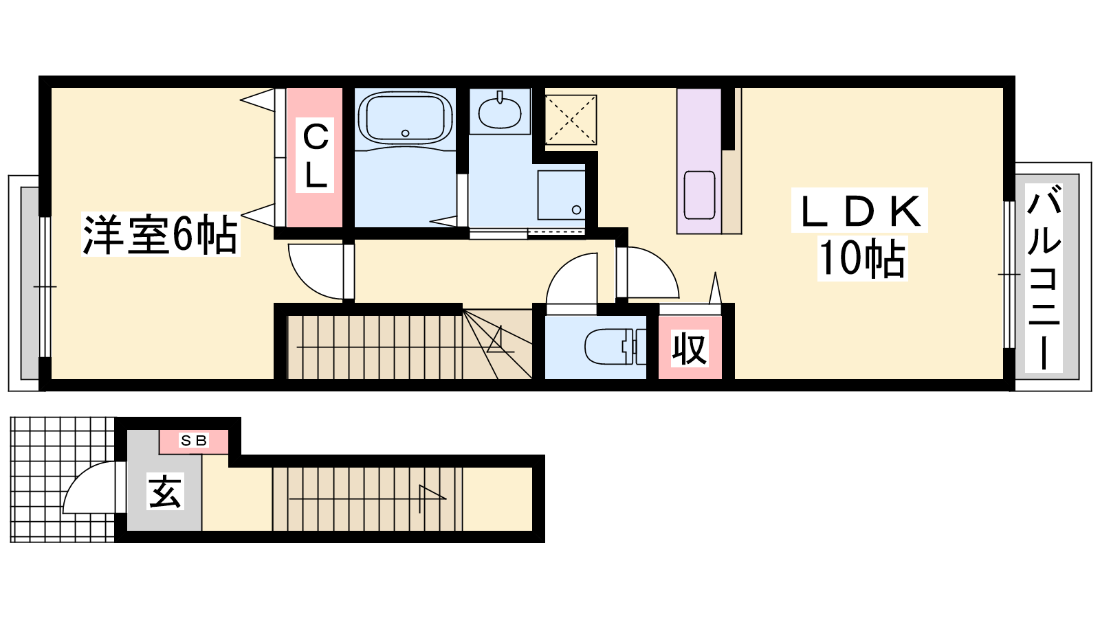 - LDK10帖、洋室6帖