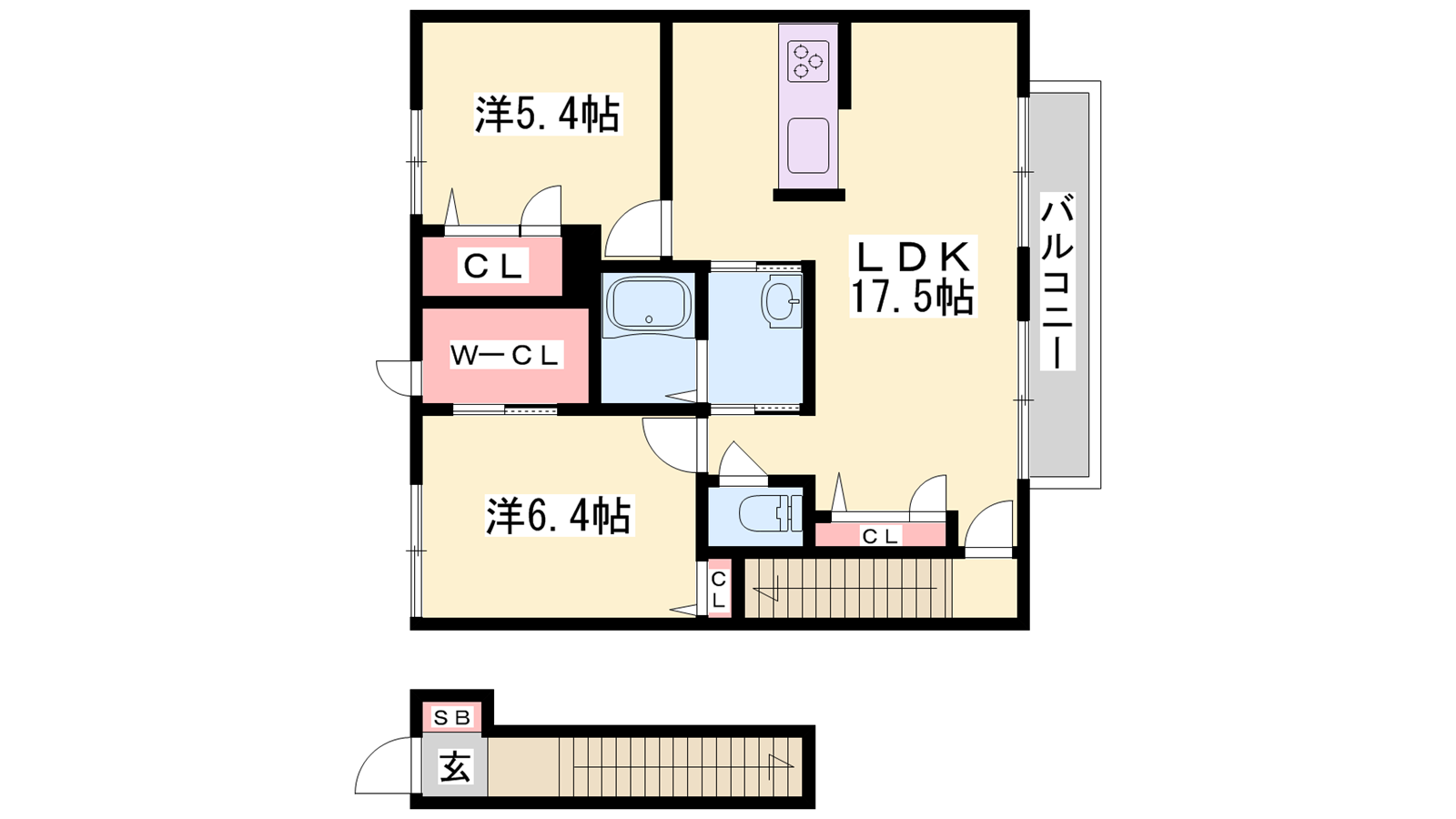 - LDK17.5帖、洋室6.4帖、洋室5.4帖
