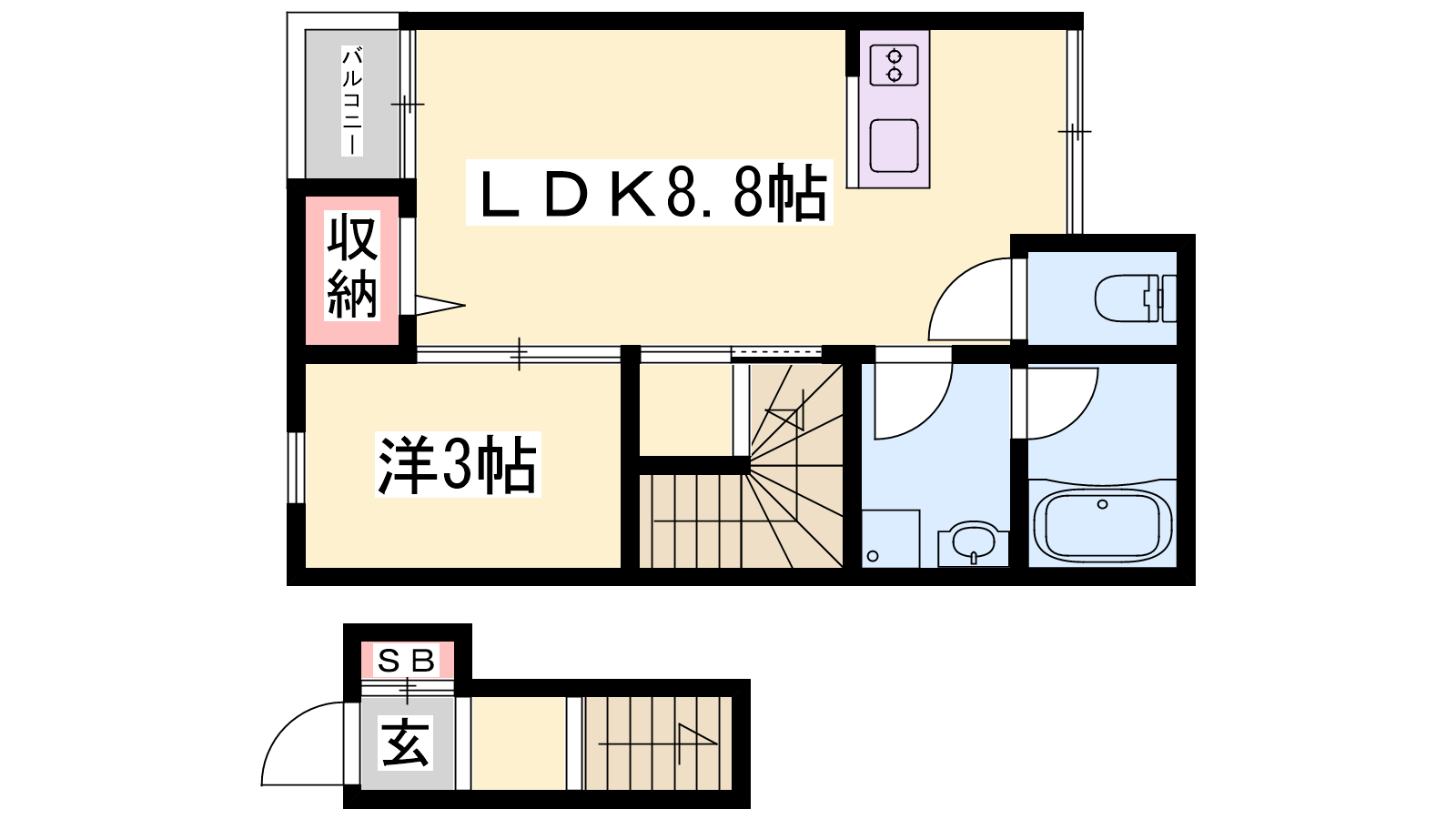 - LDK8.8帖、洋室3帖
