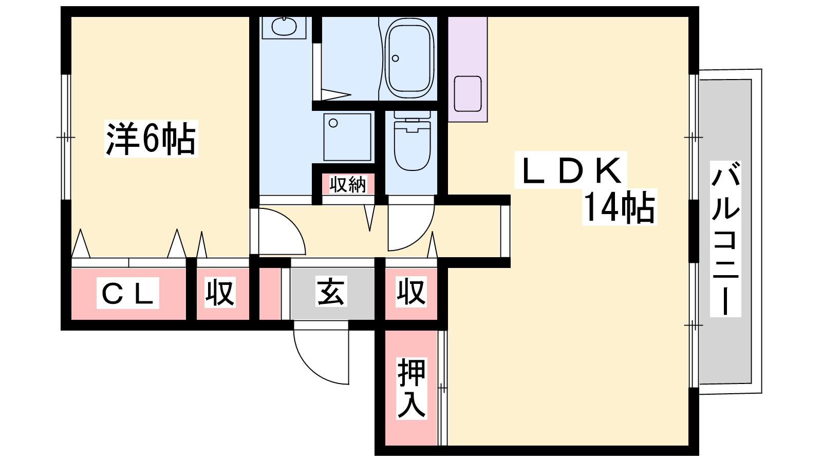 - LDK14帖、洋室6帖