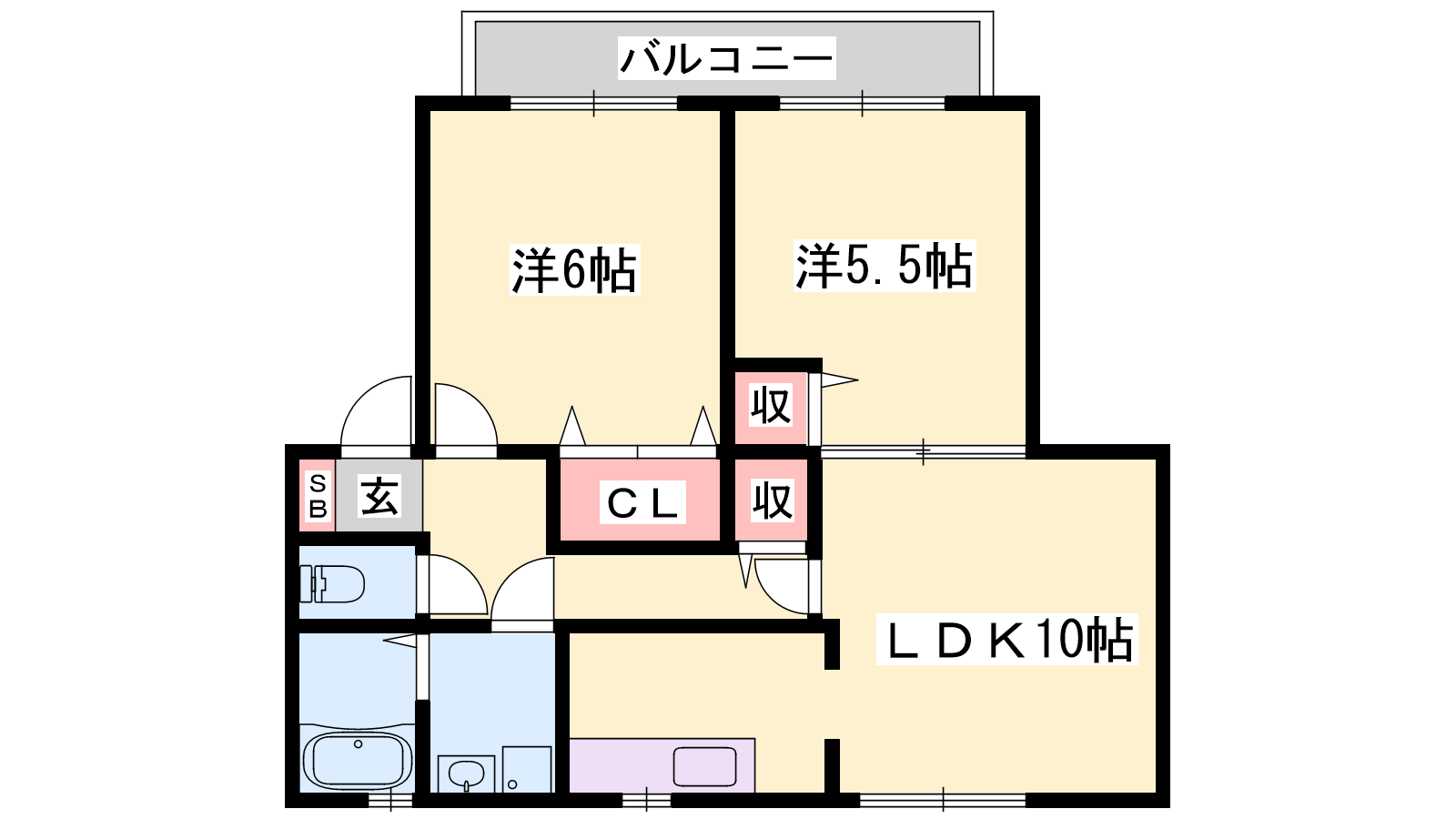 - LDK10帖、洋室6帖、洋室6帖
