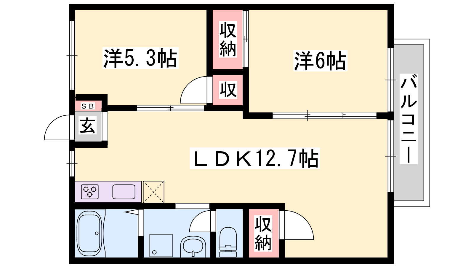 - LDK12.7帖、洋室6帖、洋室5.3帖