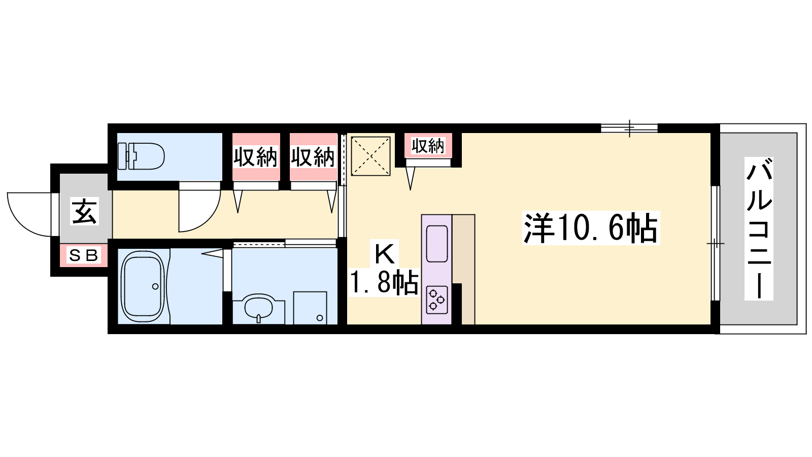 - K1.8帖、洋室10.6帖